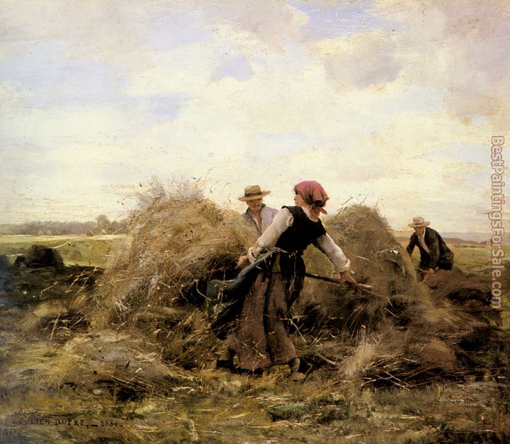Julien Dupre was Working during the last half of the 19th century, Julien Dupre was an artist, considered by most, to be one of the leading exponents of the second generation of Realist painters a group that also includes Leon Lhermitte, Jules Bastien-Lepage and Pascal Dagnan-Bouveret. Like J.F. Millet and J. Breton, before them, these artists devoted their artistic careers to the depiction of the toils of the French peasant - often seen hard at work in the fields. As Hollister Sturges states in Jules Breton and the French Rural Tradition (1982, Joslyn Art Museum).
