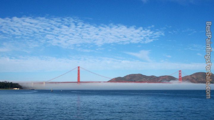 We offer 100% handmade reproduction of Golden Gate Bridge in Fog painting and frame