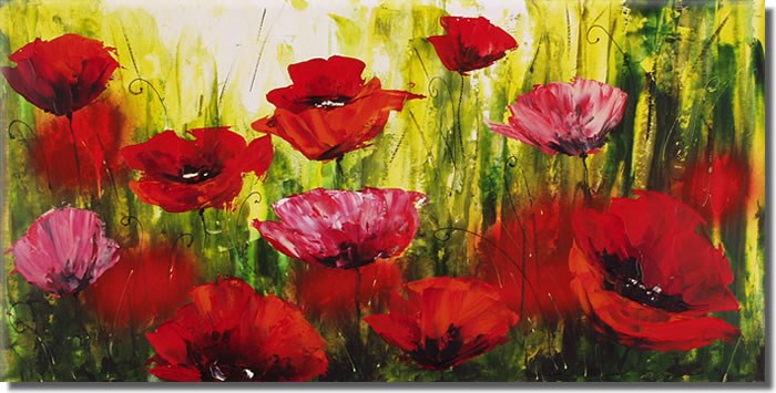 This flower painting is oil on canvas. We offer original oil painting, stretched canvas and large framed art, but do not offer poster, print or giclee for this flower .