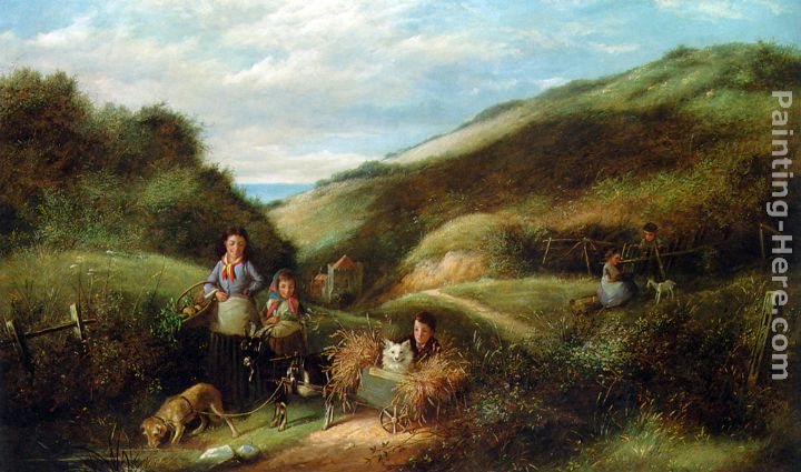 This Charles Hunt A Cottage Concert painting is oil on canvas. We offer original oil painting, stretched canvas and large framed art, but do not offer poster, print or giclee for this Charles Hunt A Cottage Concert.