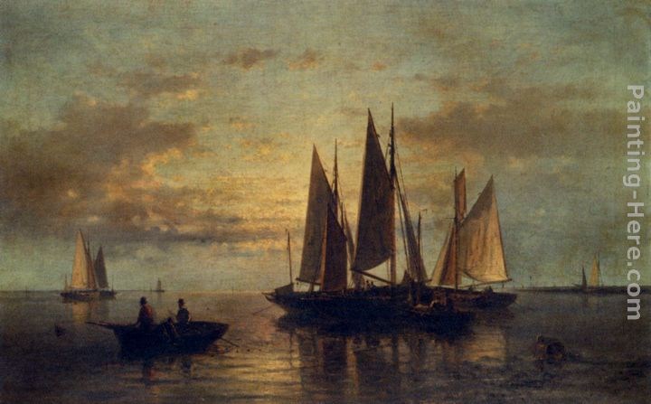 We offer 100% handmade reproduction of A Dutch Pink Heading Out To Sea, With Shipping Beyond painting and frame