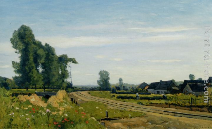 Henri-Joseph Harpignies A Farmer Crossing a Field Painting
