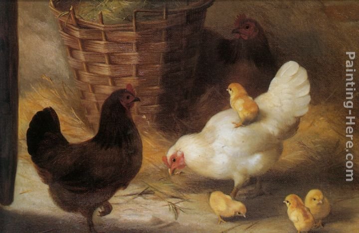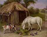 We offer 100% handmade reproduction of A Farmyard Scene with goats, chickens, doves painting and frame