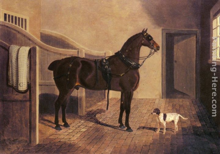 John Frederick Herring Snr A Favorite Coach Horse and Dog in a Stable Painting
