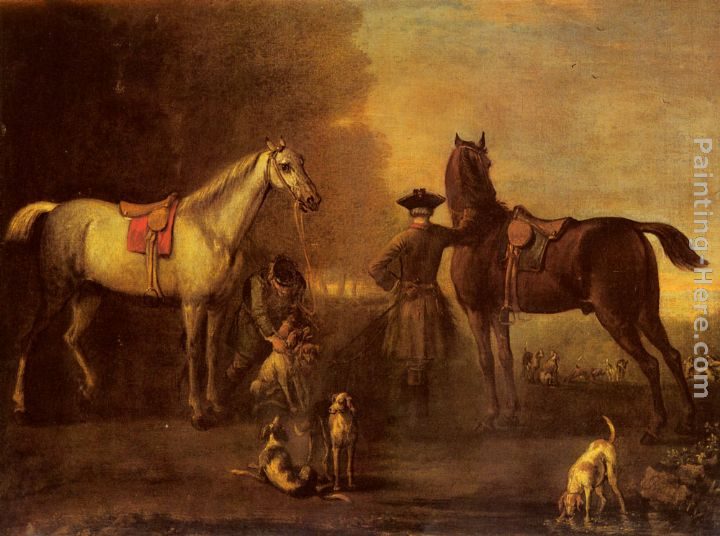 John Wootton The Duke Of Rutland's Bonny Black Held By A Groom At Newmarket