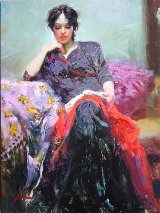This Pino A WOMAN OF MYSTERY painting is oil on canvas. We offer original oil painting, stretched canvas and large framed art, but do not offer poster, print or giclee for this Pino A WOMAN OF MYSTERY.