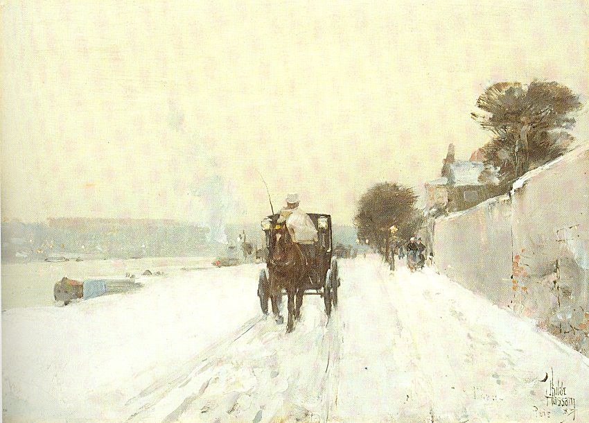 This childe hassam Along the Seine Winter painting is oil on canvas. We offer original oil painting, stretched canvas and large framed art, but do not offer poster, print or giclee for this childe hassam Along the Seine Winter.