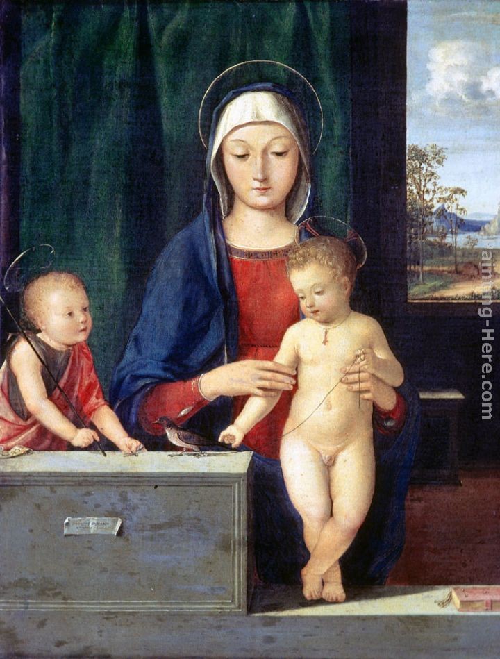 This Andrea Solario Virgin and Child painting is oil on canvas. We offer original oil painting, stretched canvas and large framed art, but do not offer poster, print or giclee for this Andrea Solario Virgin and Child.