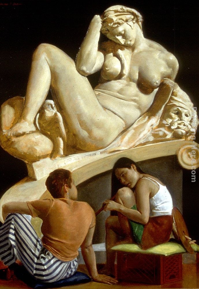 This Andrew Sterrett Conklin Students with Night painting is oil on canvas. We offer original oil painting, stretched canvas and large framed art, but do not offer poster, print or giclee for this Andrew Sterrett Conklin Students with Night.