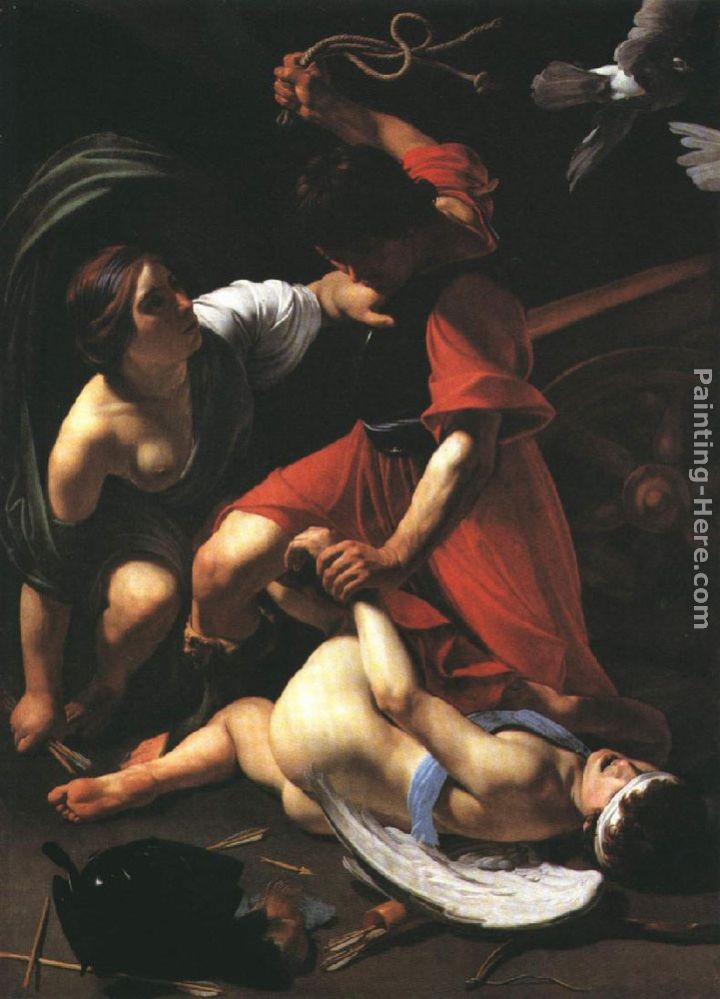 This Bartolomeo Manfredi Cupid Chastised painting is oil on canvas. We offer original oil painting, stretched canvas and large framed art, but do not offer poster, print or giclee for this Bartolomeo Manfredi Cupid Chastised.