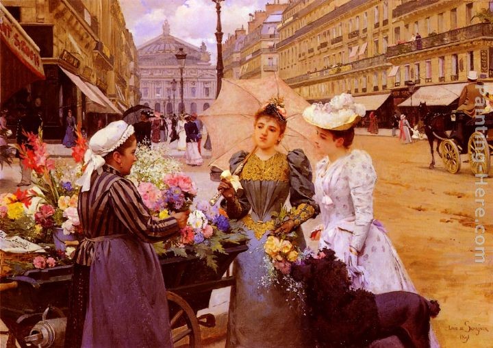 Louis Marie de Schryver A Flower Seller Near The Arc De Triomphe