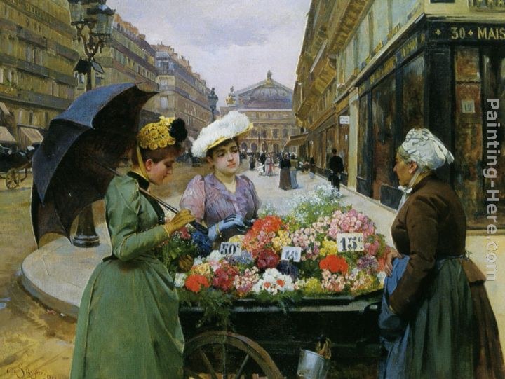 Louis Marie de Schryver The Flower Seller, Avenue de L'Opera, Paris