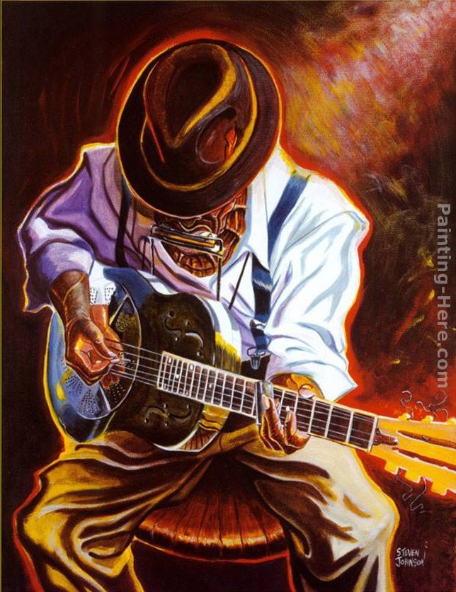 This Steven Johnson Blowin Blues painting is oil on canvas. We offer original oil painting, stretched canvas and large framed art, but do not offer poster, print or giclee for this Steven Johnson Blowin Blues.