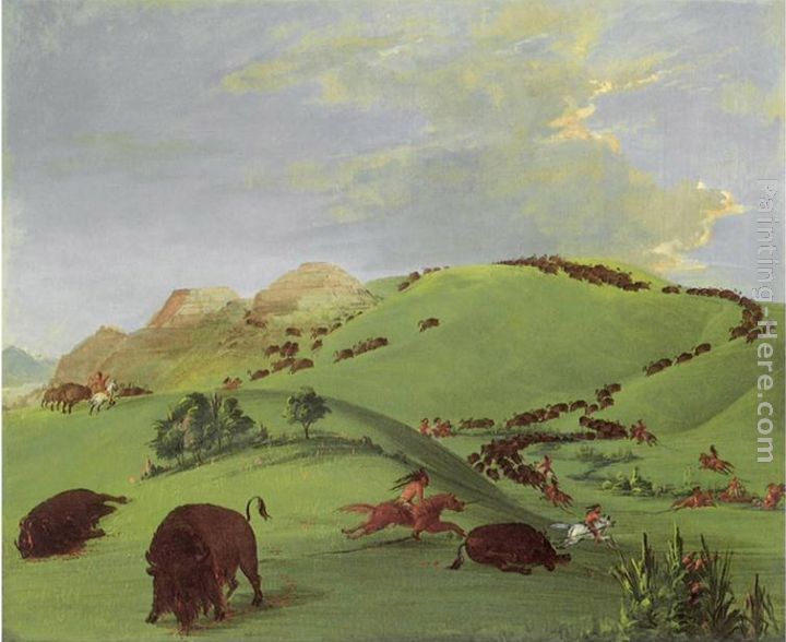 George Catlin Buffalo Chase, Mouth of the Yellowstone Painting