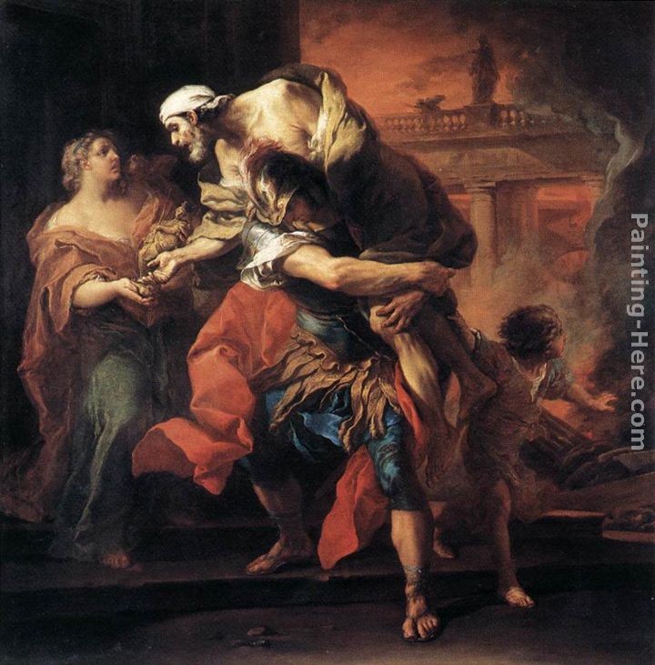 Beautiful, original hand-painted artwork in your home. Aeneas Carrying Anchises based on the masters' works of Carle van Loo.