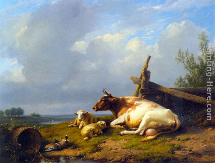 Eugene Verboeckhoven Cattle on the Waterfront Painting