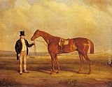 We offer 100% handmade reproduction of Cecil, a favorite Hunter of the Earl of Jersey in a Landscape painting and frame