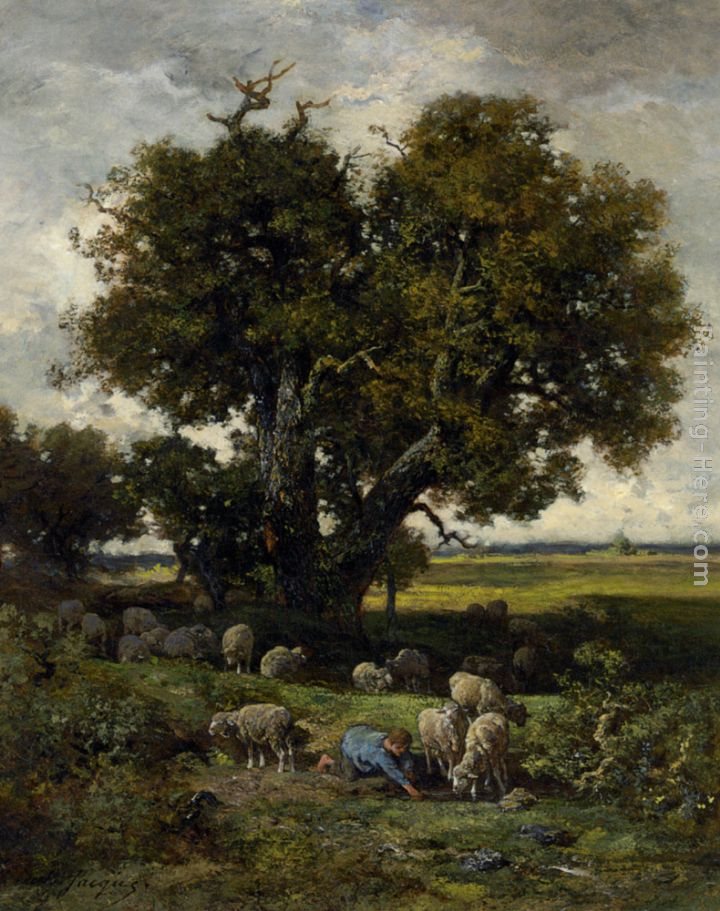 This Charles Emile Jacque Little Blue Boy painting is oil on canvas. We offer original oil painting, stretched canvas and large framed art, but do not offer poster, print or giclee for this Charles Emile Jacque Little Blue Boy.