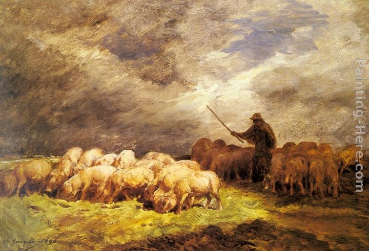 This Charles Emile Jacque The Swineherd painting is oil on canvas. We offer original oil painting, stretched canvas and large framed art, but do not offer poster, print or giclee for this Charles Emile Jacque The Swineherd.