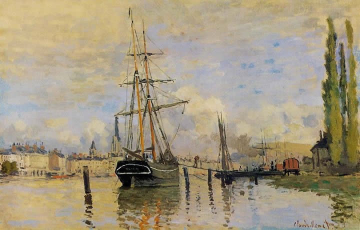 This Claude Monet The Seine at Rouen 1 painting is oil on canvas. We offer original oil painting, stretched canvas and large framed art, but do not offer poster, print or giclee for this Claude Monet The Seine at Rouen 1.