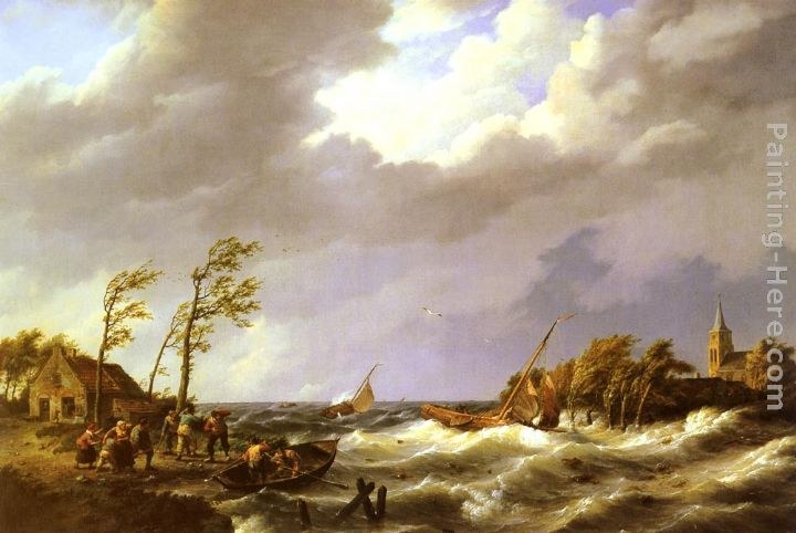 Johannes Hermanus Koekkoek Coming Ashore Painting