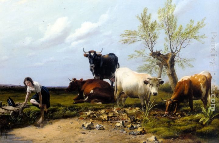 We offer 100% handmade reproduction of Cows in a Meadow painting and frame