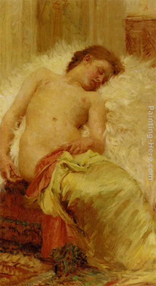 This Vlaho Bukovac Daydreams painting is oil on canvas. We offer original oil painting, stretched canvas and large framed art, but do not offer poster, print or giclee for this Vlaho Bukovac Daydreams.