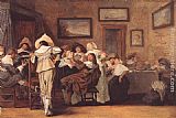 Beautiful, original hand-painted artwork in your home. Seated Man with Sword based on the masters' works of Dirck Hals.