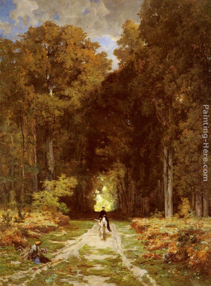 Jules Joseph Augustin Laurens Equestrienne on a Wooded Lane Painting