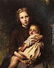 Portrait of a Girl with Red Shawl by Etienne Adolphe Piot