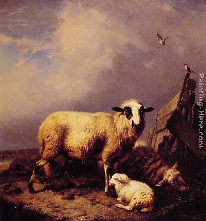 Eugene Verboeckhoven Guarding the Lamb Painting