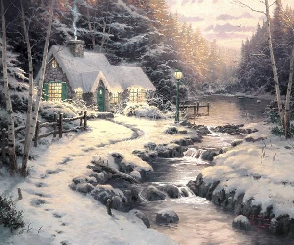 Beautiful, original hand-painted artwork in your home. Evening Glow based on the masters' works of Thomas Kinkade.