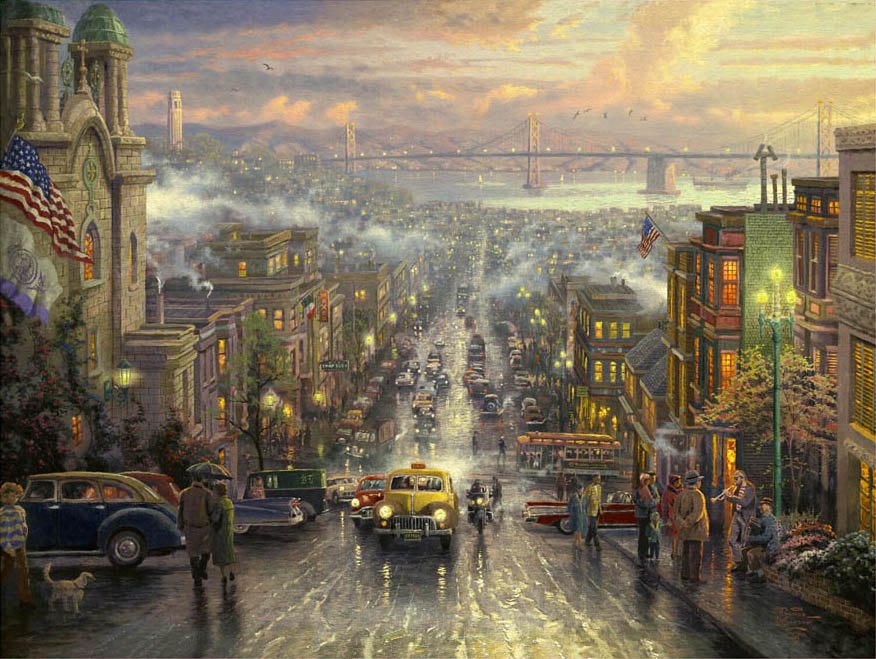 This Thomas Kinkade Evening Glow painting is oil on canvas. We offer original oil painting, stretched canvas and large framed art, but do not offer poster, print or giclee for this Thomas Kinkade Evening Glow.