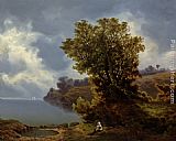 Willem Bodemann Two Figures Seated Under a Tree with Storm Approaching Beyond