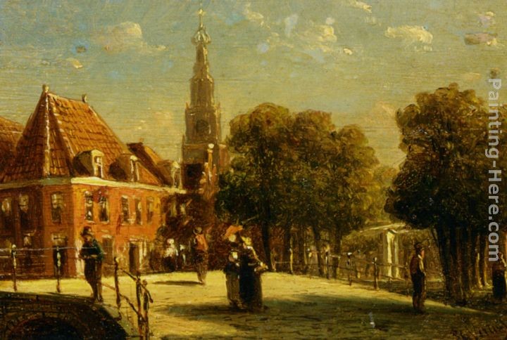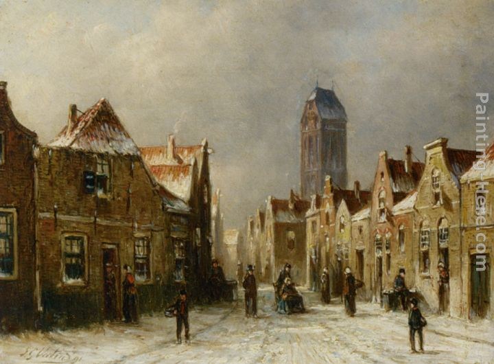 We offer 100% handmade reproduction of Figures in the streets of a snow covered dutch town painting and frame