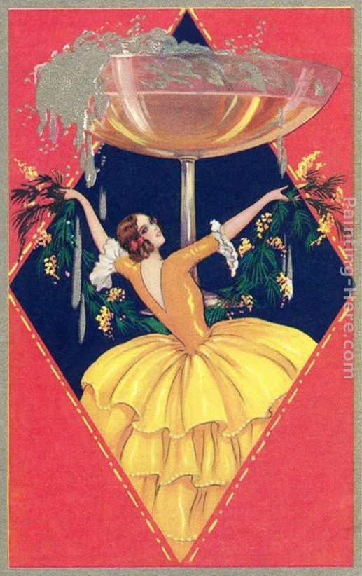 We offer 100% handmade reproduction of Flamenco Dancer with Giant Champagne Glass painting and frame