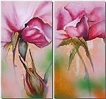 This flower painting is oil on canvas. We offer original oil painting, stretched canvas and large framed art, but do not offer poster, print or giclee for this flower .