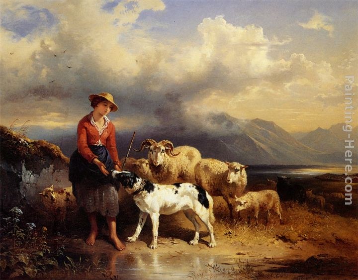Friedrich Gauermann Baeurnmadchen mit Schafherde Painting
