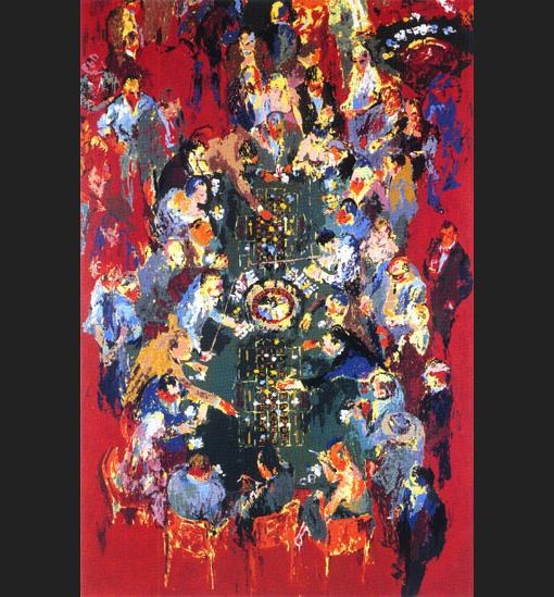 This Leroy Neiman Gaming Table painting is oil on canvas. We offer original oil painting, stretched canvas and large framed art, but do not offer poster, print or giclee for this Leroy Neiman Gaming Table.