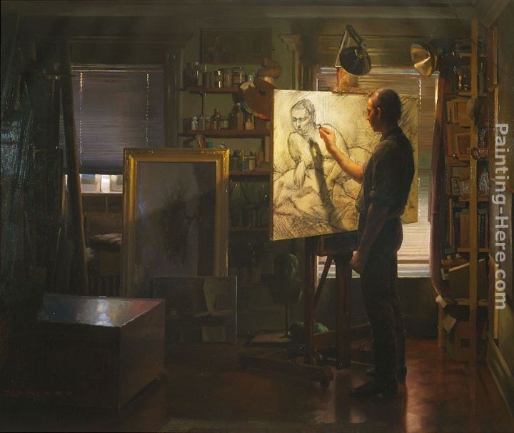 This Jacob Collins Grimaldi in Studio painting is oil on canvas. We offer original oil painting, stretched canvas and large framed art, but do not offer poster, print or giclee for this Jacob Collins Grimaldi in Studio.