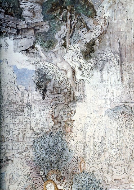 Beautiful, original hand-painted artwork in your home. The Chimeras - detail based on the masters' works of Gustave Moreau.