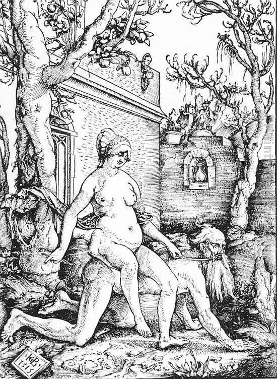This Hans Baldung Aristotle and Phyllis painting is oil on canvas. We offer original oil painting, stretched canvas and large framed art, but do not offer poster, print or giclee for this Hans Baldung Aristotle and Phyllis.