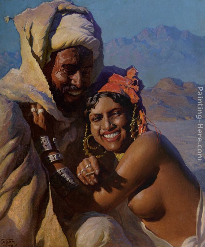 This Adam Styka Harem Dancer painting is oil on canvas. We offer original oil painting, stretched canvas and large framed art, but do not offer poster, print or giclee for this Adam Styka Harem Dancer.
