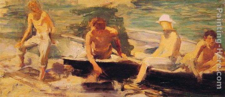 Beautiful, original hand-painted artwork in your home. The Rowing Party based on the masters' works of Henry Scott Tuke.