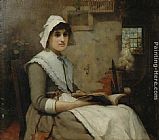 William Watson Paintings - William Watson Highland Cattle Grazing by a Mountain Stream Painting