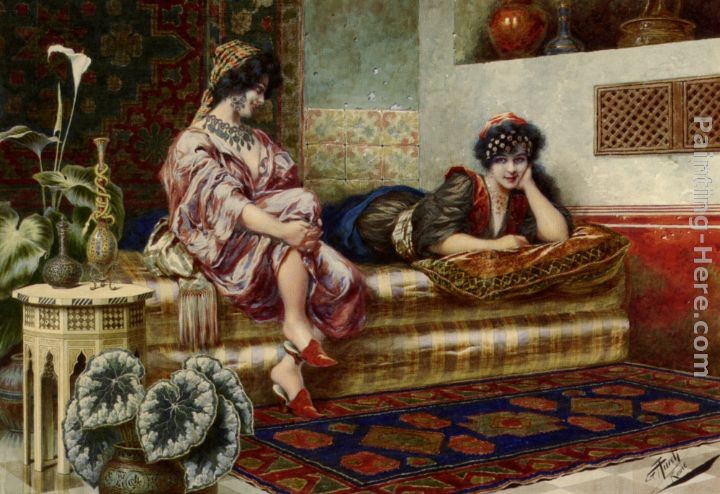 We offer 100% handmade reproduction of Idle Hours in the Harem painting and frame