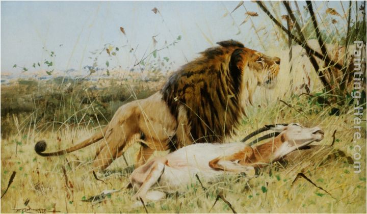 This Wilhelm Kuhnert In The Twilight, Elephants painting is oil on canvas. We offer original oil painting, stretched canvas and large framed art, but do not offer poster, print or giclee for this Wilhelm Kuhnert In The Twilight, Elephants.