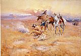This Charles Marion Russell Invocation to the Sun painting is oil on canvas. We offer original oil painting, stretched canvas and large framed art, but do not offer poster, print or giclee for this Charles Marion Russell Invocation to the Sun.