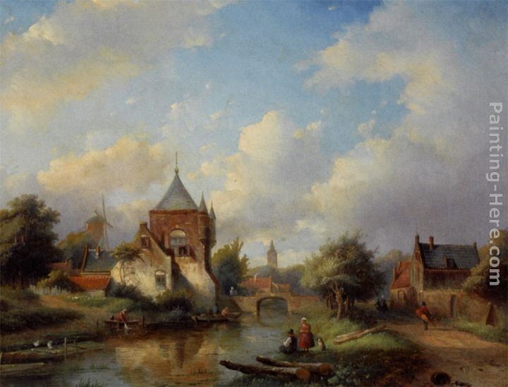 We offer 100% handmade reproduction of A Summer Landscape with Figures Along the Riverside painting and frame