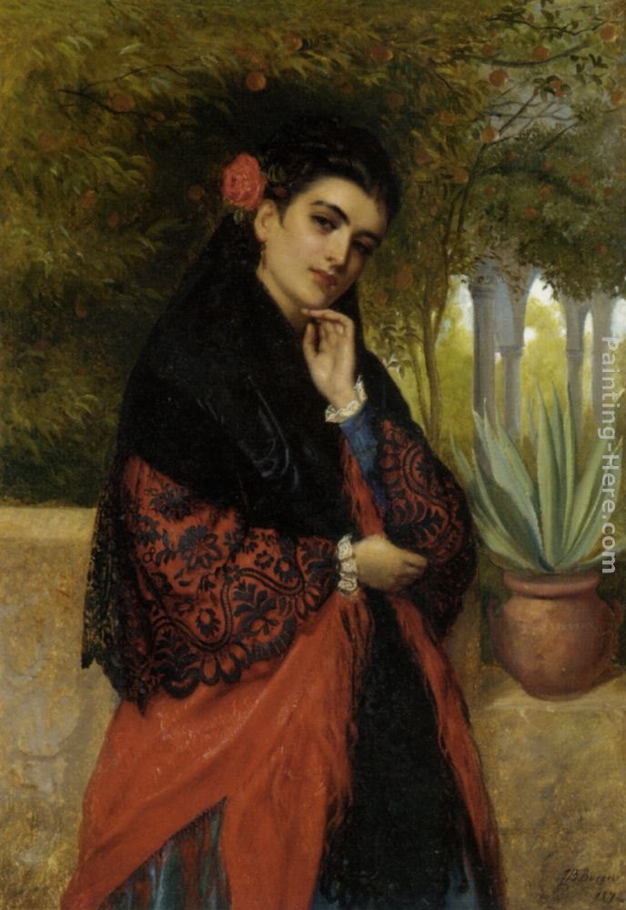 John Bagnold Burgess Spanish Beauty in a Lace Shawl Painting